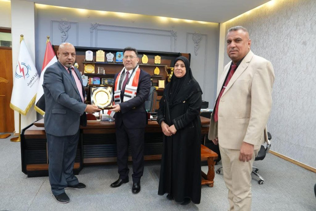 مؤسسة المنقذ للرعاية الاجتماعية والتنمية المستدامة تكرم المدير العام لانتاج كهرباء الجنوب درع التميز والإبداع